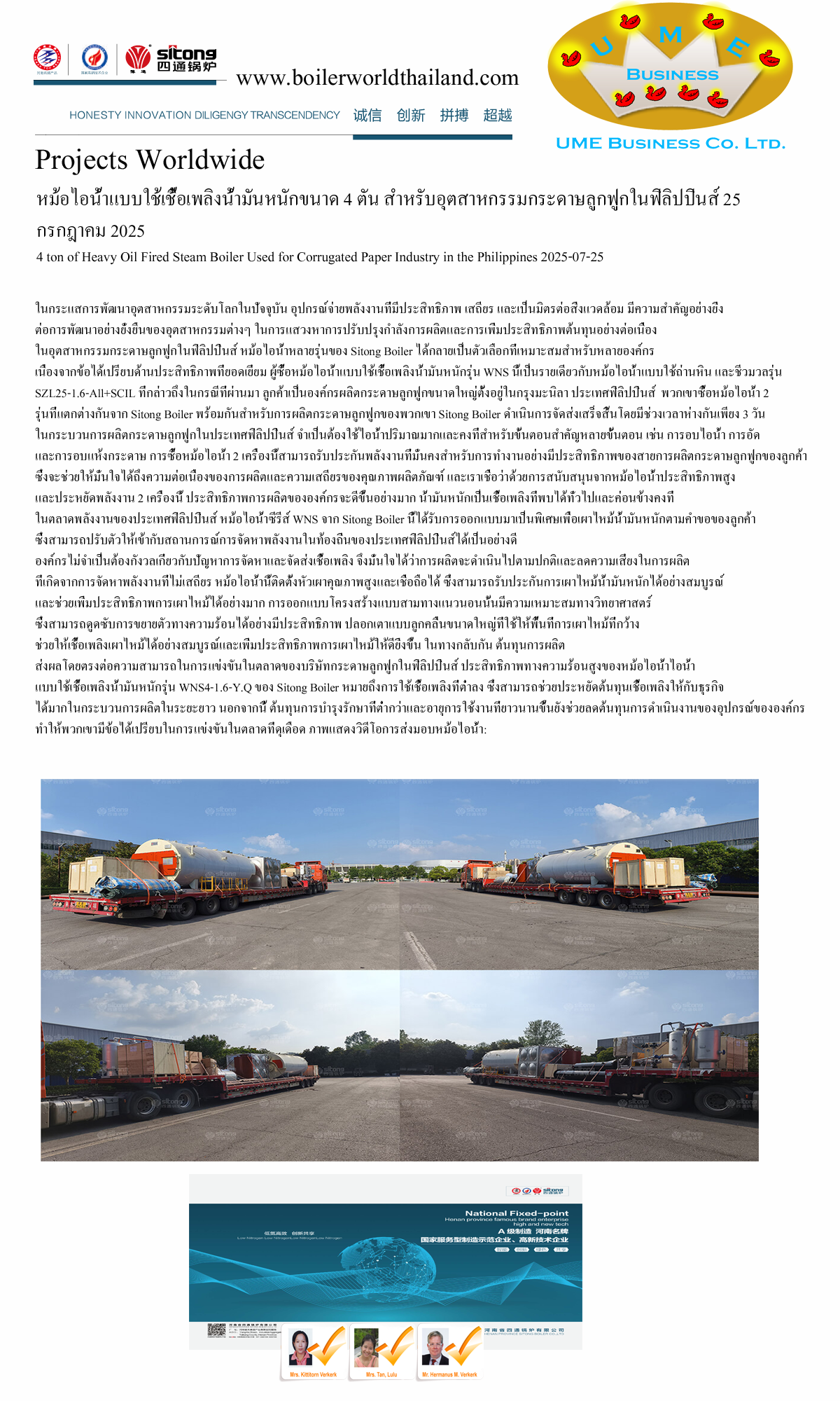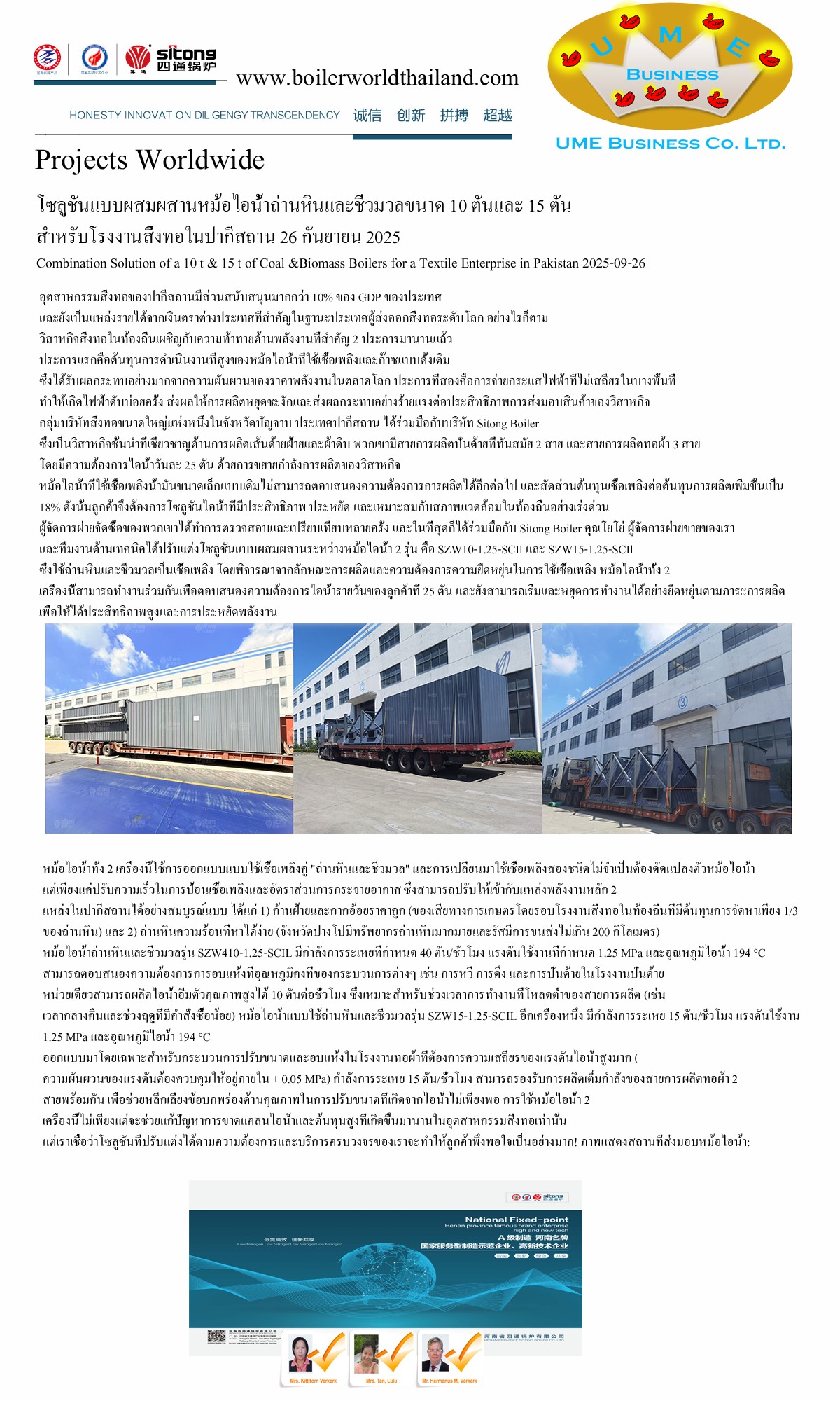 เราเป็นตัวแทนจำหน่ายแต่เพียงผู้เดียวของบริษัท Sitong Boiler Co., Ltd. ซึ่งเป็นผู้ผลิตหม้อไอน้ำอุตสาหกรรมเกรด A ชั้นนำระดับมืออาชีพ ตั้งอยู่ในมณฑลเหอหนาน ประเทศจีน โดยให้บริการโซลูชั่นครบวงจรสำหรับการออกแบบ ผลิต ขนส่ง ติดตั้ง และบริการหลังการขายสำหรับหม้อไอน้ำอุตสาหกรรม